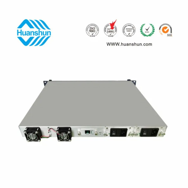 大功率光纖放大器 | YGF1508-16 | 19 " 1U標準機箱,-5 ~ +10 d Bm輸入,8路標稱規格(16、17、18、19、20、21、22dBm)放大輸出,并支持下調-2dB,安全連接模式,NF ≤ 5dB(0dBm時);內置FWDM合波器,插播損耗 ≤ 1dB;雙模塊熱插撥電源,AC90 ~ 255V或DC-48V供電,RJ45標準網管(支持SNMP、WEB) |